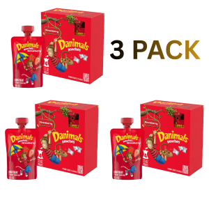 3 PACKS Danimals Pouches Strawberry Squeezable Low Fat Yogurt Pouches, 3.5 oz, 4 Count