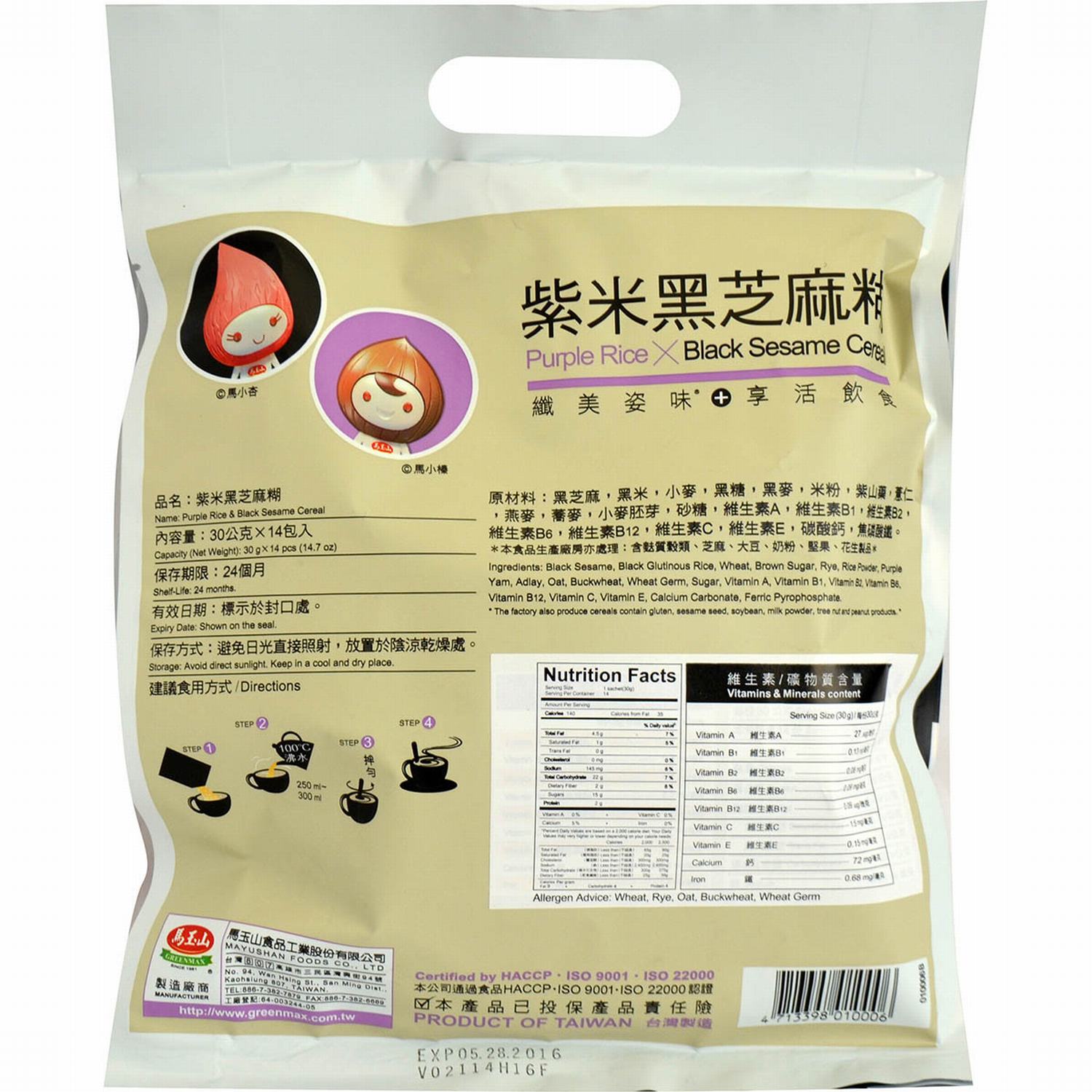Greenmax (MaYuShan) Purple Rice & Black Sesame Cereal, 14.7Oz*2Bags (A2-7:8)